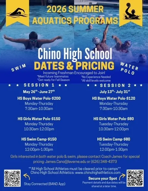 Freshman Football Camp 2026 Volleyball Girls 2026 Aquatics- Boys & Girls Water Polo and Swim 2026 Flag Football 2026 Cross Country 2026 Girls Soccer 2026 Boys Volleyball 2026 Softball Camp 2026 Baseball 2026
